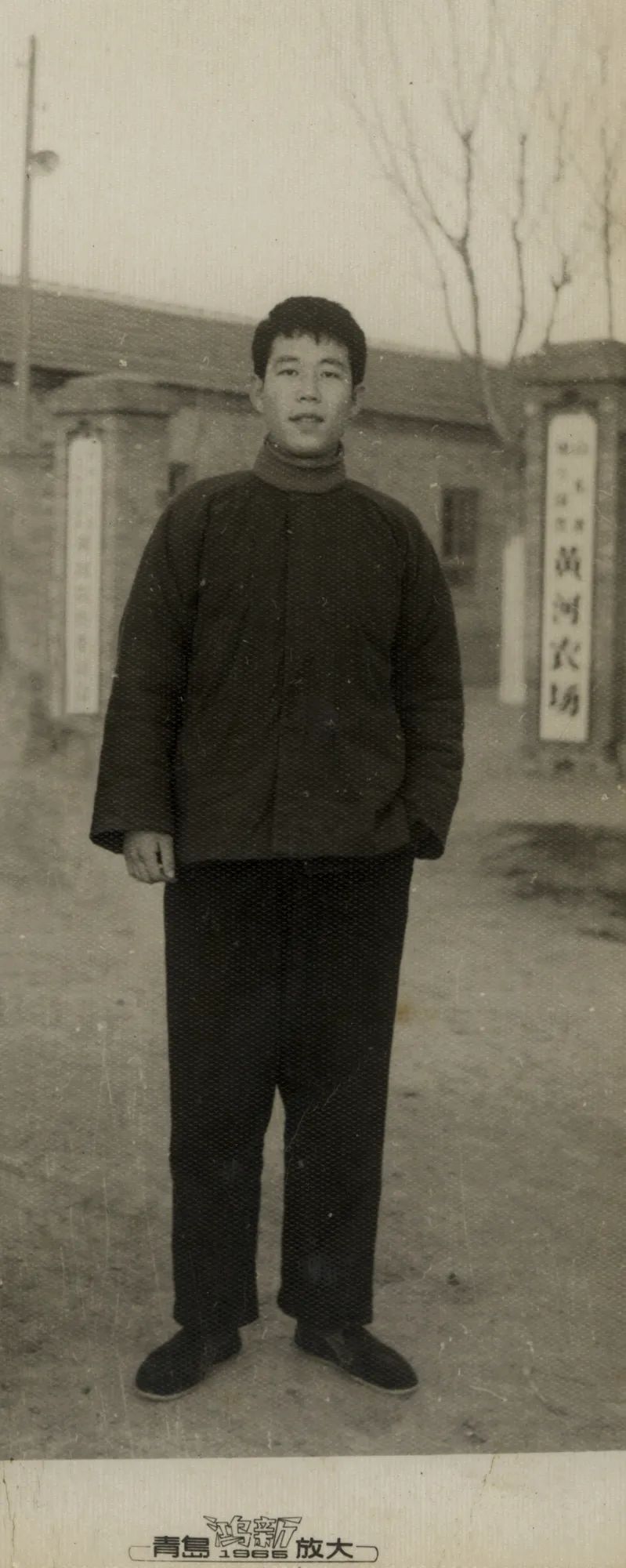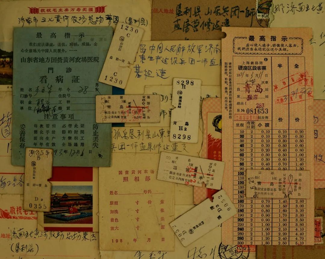一套从黄河源头到尽头的宣传画,最后一张是 “荒滩变良田” 黄河农场一角。 黄河农场,它在黄河流入大海的尽头。这是我的故乡! 这是一个荒蛮之地,一片原始滩涂,杂草丛生,人烟稀少,人们叫这里“孤岛”。1950年代,孤岛有40万亩新生土地尚未开发,1956年在这里成立 “国营黄河农场”,隶属山东省公安厅。1958年,建立山东省第一个县级人民公社“孤岛人民公社”。1969年1月,接受安置城市知识青年5000人,由于大部分知青来自济南市,农场改名为济南市五七黄河农场。1970年7月,组建为山东省生产建设兵团一师一团,农场全面实行军管。 1988年,一分场小学五年级在农场照相馆拍摄的毕业照,照片里的老师和学生都离开了这里。 黄河在这里入海,1974年我出生在这里的“国营黄河农场”,1991年我离开这里,父母一直生活在这里。年轻人都离开了农场,老人们也都被子女接到了城里,留在这里的已经很少。农场作为一个政治产物,在1980年代改革开放之后接下来的30多年时间里,它冰冻在了那个时代。 黄河农场老照片 我家往东十几公里就是大海。小时候记忆中,每年夏天野外都要漫滩,夏天黄河水大。夏秋之际风大,很多的树都被吹倒了。冬天的雪有半米深。只有一条路通往50公里外的垦利县城,17岁之前我只去过一次,1985年春天我上五年级,跟同学结伴从孤岛车站坐车,一路向西行驶在黄河南岸的大坝上,来到西双河车站,到县文化馆看人家画画,其它时候都是路过县城。 父亲的铁盒子 我的父亲,1963年 父亲的看病证、火车票和信封。 农场的医院在我看来是个宏伟的建筑,也是“苏式”风格。我没有把它旧时的模样拍下来,我当兵的时候医院就改造了。父亲那会在医院上班,知道我喜欢旧东西,医院改造处理旧家具,他把一扇印着“领袖像”的橱子门卸了下来,留给了我。 对于故乡的拍摄始于1997年,那年冬天我拿着一台尼康90X相机去拍我家的房子、父母的生活、废弃的学校、车站,拍完就把照片扔在了一边。父亲有一个深蓝绿色的铁盒子,用来存放影集和信件,盒子是父亲一个放电影的朋友给他的。这个铁盒子里面的邮票都被我撕掉了,那本影集里都是各地亲戚的照片,小时候我基本都没见过,直到今天有些人我也没有见过,父亲会跟我讲他们的故事。每年我都要翻看几次这本影集。那几年拍下这些照片,大概就是想留存一些记忆。 远处是我上育红班的地方,老师一不注意,我就跑了,去木工厂找我爸或者去果园找我妈。有一年冬天,在育红班脚丫子生冻疮,邻居家的“文革哥”抓了麻雀给我妈,我妈用麻雀脑子糊在我冻疮上,说是偏方,这之后我就再没去过育红班。小时候的小伙伴不知道何时就跟父母搬到城市里去了,育红班最有印象的是一个叫石磊的,课间拿凳子无意间把我的头给打破了,血顺着帽子流了下来,用手一摸,看到满手血,我大哭起来,跑向隔壁的卫生所,这之后再没见过他。 从记事起,到了夏天,除了知了的声音,就是飞机低空盘旋飞过的嗡嗡声。1969年这里建了一个灭蝗机场,黄河入海口蝗区占中国东亚飞蝗蝗区总面积的四分之一,发生面积180万亩,是中国最大的东亚飞蝗蝗区。2002年6月,一架“运五”飞机在灭蝗中坠毁。 照片里右边的白发老人是我高中时候的历史老师,贵州人,上课经常给我们讲他父亲在贵州大山里“剿匪”的故事,一口浓重的贵重口音,讲的比电视剧《乌龙山剿匪记》精彩。 对于黄河农场,我最深刻的记忆是我家紧挨着礼堂,也就三十米的距离。1976年毛去世,我隐约能记起礼堂开追悼会传出的声音。那些年礼堂天天开大会,经常看到主席台边上蹲着一排人,双手举块砖放在头顶。家的隔壁是派出所,我捡到过一个钱包,交给了隔壁的警察叔叔,因此我高兴了好长时间。当时最大的梦想是奔向2000年。那个时代,几个小朋友乘坐宇宙飞船奔向太空的宣传画四处可见,宇宙飞船的屁股里喷出“奔向2000年,实现四个现代化”几个大字。我出生在农场,周边是农村,从小我就来往于青岛和农场之间,我看到了它们彼此之间的巨大差异。 农场的一个老人告诉我,这条河沟最早是黄河的一条支流。2011年春节,在这碰到这个小男孩,看长相就知道是谁家的孩子。他是来姥爷家过春节,她的姥爷和我父亲都在木工厂工作过。我的童年就是在这些河流、荒野里度过的。 这是黄河大坝上的公路,坝的下面是三分场,往前走就没有自然村落了,走十几公里就是大海,现在的海岸线比五十年前退后了几公里。入海口现在是国家级自然保护区,1980年代这周围进行了石油开发,1986年开发了黄河北岸的孤东油田,拥有亚洲最大的油气处理联合站。 1991年7月我离开了农场,去青岛复课学美术,第二年仍没考上大学便又回到了农场,每天就是听达明一派和刘铮的歌,或者是去海叉子钓鱼,到大野地里套兔子。最要好的同学考上了油田的技校,放假回家我俩就到野地里晃荡,朗诵他写的诗 “抽一根香烟,刺激我的肺;喝一杯白酒,刺激我的胃”,无聊的时候就坐在墙头上发呆。 2004年我拍了这个库房,红色的砖、绿色的木头门窗、蓝色的木质山墙,那个时代的建筑审美朴素实用,不像今日这般的浮华和浮夸,我拍完这张照片的第二年,这些房子就拆除了。 2011年的二分场,只有十几户人家在这里居住。高中的时候,学校在这里承包了一些稻田地,初中和高中的学生都要来插秧和收割,我连续来干了两年,中午二分场