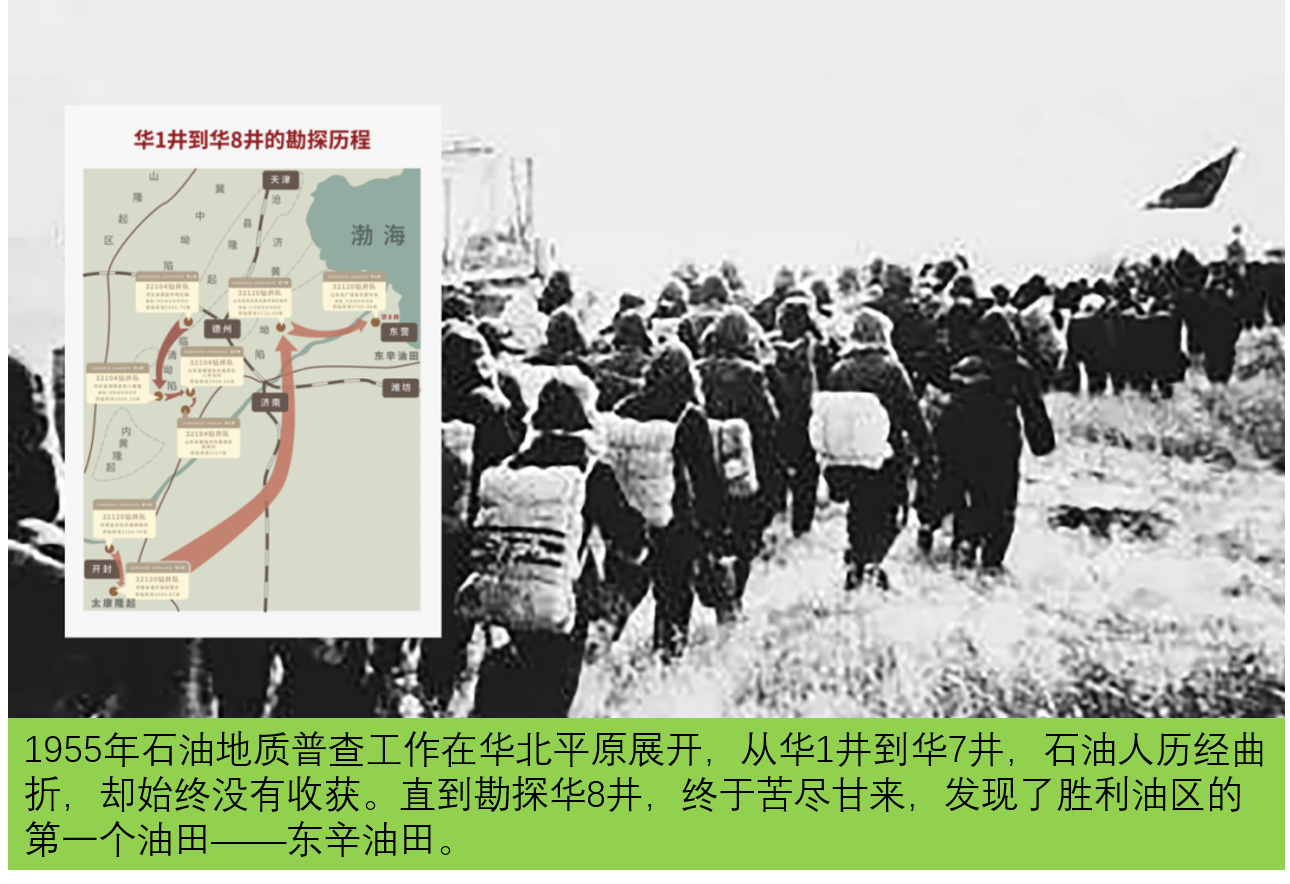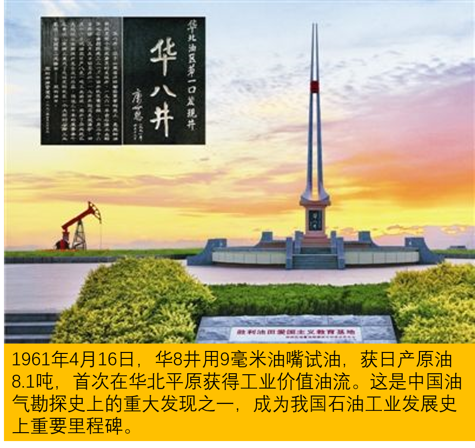 在我国,胜利油田知名度仅次于大庆油田。该油田(区)主体位于渤海湾盆地济阳坳陷 (图1),地理位置为山东北部渤海之滨的黄河三角洲地带,主要分布在东营、滨州、德州、济南、潍坊、淄博、聊城、烟台等8个城市的28个县(区)境内,主要工作范围约4.4万平方公里。 胜利油田是中国石化旗下的分公司,总部位于山东省东营市。东营原是一个小村庄,它因油而生、因油而兴,如今发展成为全国著名石油城之一。 胜利油田(区)是继大庆油田发现之后,在我国东部发现的第二个大油区。1978年生产原油1946万吨,成为当时全国第二大产油区。1987年原油突破3000万吨,在3000万吨水平上保持稳产至1995年,其中1991年达到3355.19万吨的历史最高水平。2021年胜利油田石油产量2210万吨,产自71个油田(不包括其渤海湾盆地以外探区)。 —— 胜利油田是如何发现的?历经数载,转战三省,第八口井终于发现。 1955年,国家决定对华北平原地区展开区域性的石油普查,从1956年到1961年,普查队转战河北、河南、山东,钻探了华北地区第1号至第7号基准井,都没有获得油气发现(图2)。1961年4月16日,在山东广饶境内东营村附近东营构造上打的华8井(图3),在华北地区首次见到工业油流,日产原油8.1吨,从而发现了山东省境内的第一个油田——东辛油田,宣告了胜利油田(区)诞生,也是是渤海湾盆地的第一口出油井。 ——何时命名为胜利油田的?始称九二三厂,发现10年后,更名为胜利油田。 胜利油田名称与另外两口功勋井有关。1962年9月23日,在与华八井同样的东营构造上打的营2井,获日产555吨的高产油流,这是当时全国日产量最高的一口油井(图4)。当时为保密起见,胜利油田始称为“九二三厂”(图5),取其9月23日出油之意,这个名称用了近10年。 1964年1月25日,国家正式批准组织华北石油勘探会战,形成了继大庆石油会战之后的又一场石油会战(图6)。1965年3月, 在垦利县胜坨镇胜利村附近的坨11井发现厚度112米含油层,获日产1134吨的高产油流,是国内首次发现的千吨级油井(图7、图8),发现了胜利油区最大的油田——胜坨油田(探明地质储量5.1亿吨)。由于该油井位于胜利村一带,为了纪念石油会战取得的巨大胜利,1971年6月11日 ,“九二三厂”更名为“胜利油田”,这距离1961年胜利油田第一口发现井已经10年了。 1974年9月29日,在新中国成立25周年前夕,新华社以《我国建成又一大油田——胜利油田》为题,第一次向全世界报道了胜利油田。9月30日,《人民日报》头版头条予以刊登(图9)。世人震惊,举国欢腾,胜利油田才广为人知。 |